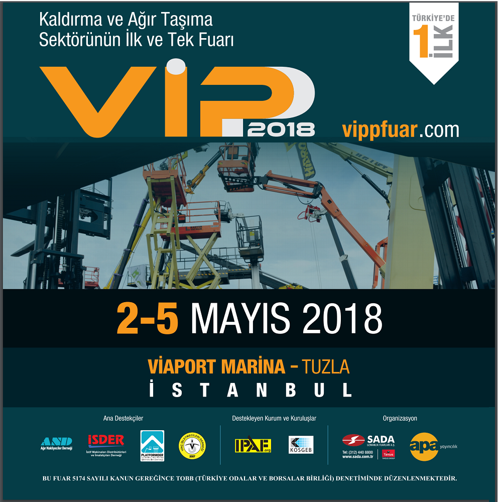 İş ve inşaat makineleri konusunda Türkiye’nin en önemli fuarı olan Komatek Fuarları’nın organizatörü SADA Uzmanlık Fuarları A.Ş. ve Türkiye iş ve inşaat makineleri sektörünün en eski ve en köklü yayın kuruluşu APA Yayıncılık yepyeni bir işbirliğine adım attılar. İki kuruluşun işbirliği ve organizasyon ortaklığı neticesinde Türkiye’nin ilk ve tek, vinç ve ağır taşıma, platform, istifleme ve elleçleme makinalarını kapsayan ve 2 - 5 Mayıs 2018 tarihleri arasında birincisi yapılacak olan VIPP 2018 Fuarı İstanbul Tuzla’da VİAPORT MARİNA’da gerçekleşecek.